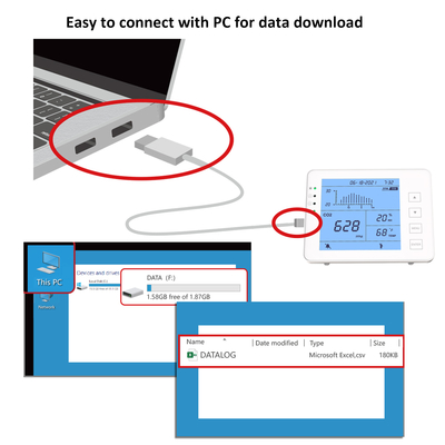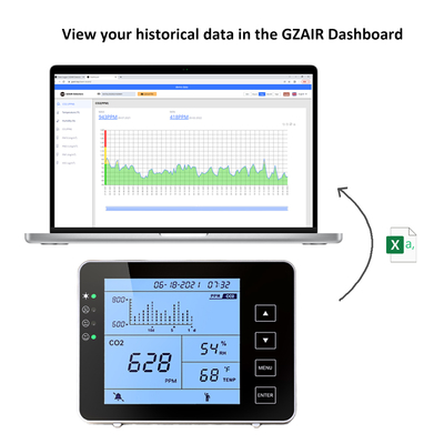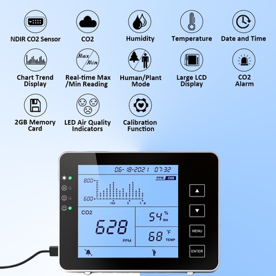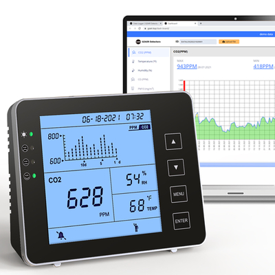 Monitor CO2 z wyświetlaczem LCD Rejestrator danych CO2/temperatura/wilgotność Detektor gazu w powietrzu w pomieszczeniach do domu, szkoły, hotelu, siłowni, z czujnikami szwajcarskimi