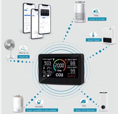 Bądź o krok przed wyzwaniami związanymi z jakością powietrza w pomieszczeniach dzięki miernikowi jakości powietrza WiFi, zaprojektowanemu do monitorowania środowiska w czasie rzeczywistym i integracji ze sterowaniem inteligentnym. To zaawansowane urządzenie nieustannie śledzi CO₂, PM2.5, PM1.0, LZO, temperaturę i wilgotność, dostarczając dane o wysokiej dokładności przez Wi-Fi i umożliwiając bezproblemową komunikację z systemami inteligentnymi.