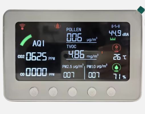 Monitorowanie IAQ w czasie rzeczywistym: Wykrywa CO₂, PM2.5/PM1.0, LZO, temperaturę i wilgotność z dużą precyzją