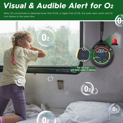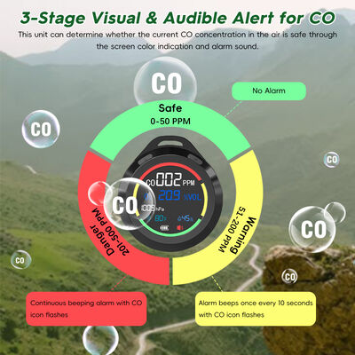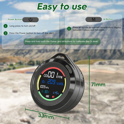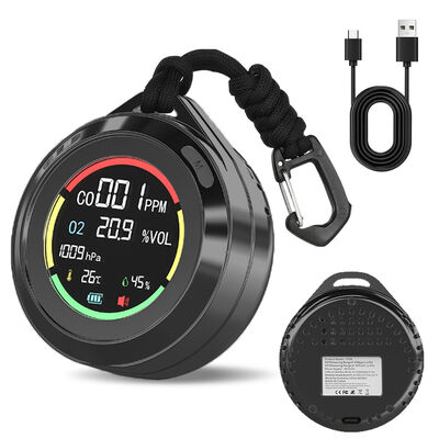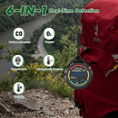 [6-w-1 i przenośna konstrukcja] Detektor tlenku węgla do kampera wykrywa CO, O2, ciśnienie atmosferyczne, wysokość, temperaturę i wilgotność w czasie rzeczywistym. Ma mini rozmiar 2,8 * 1,3 cala, można go łatwo włożyć do kieszeni. Posiada również smycz o długości 7,8 cala, którą można zawiesić i postawić.