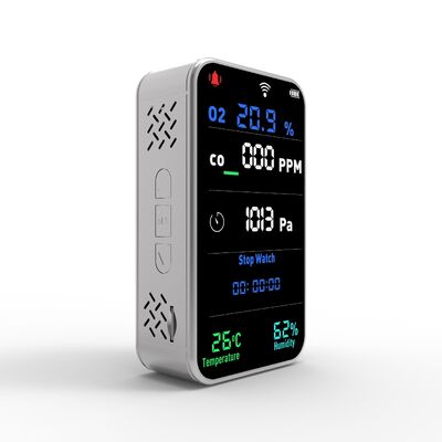 * Wielofunkcyjne monitorowanie 7-w-1: kompleksowe wykrywanie O2, CO, ciśnienia powietrza, temperatury, wilgotności oraz zegara i latarki.