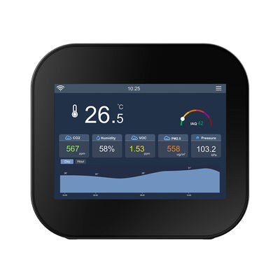 Ulepsz swoją strategię jakości powietrza w pomieszczeniach dzięki profesjonalnemu monitorowi IAQ, zaprojektowanemu z myślą o precyzji, integracji i łatwości użytkowania. Ten wysokowydajny monitor posiada responsywny interfejs dotykowy połączony z obsługą komunikacji wieloprotokołowej, co czyni go idealnym rozwiązaniem dla inteligentnych budynków, obiektów przemysłowych, kampusów edukacyjnych i placówek służby zdrowia.