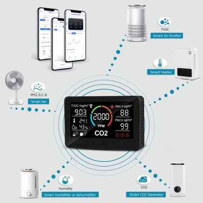| Zakres pomiarowy TVOC, Dokładność | 0~9.99mg/m3, 0.01mg/m3 |