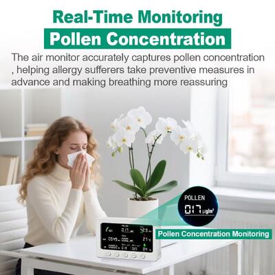 | Przeznaczone zastosowanie | Wykrywanie i cyfrowe monitorowanie w czasie rzeczywistym: pyłek, CO2, CO, VOC, PM2.5, PM1.0, temperatura i wilgotność |